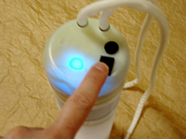 上部にロッカースイッチ(on-off-on)[充電-オフ-起動]。 充電用DCジャック。ポンプ吸水、排水口。