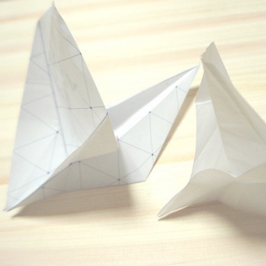 前半は鶴の折り方と同じです。後半は"開く"工程。