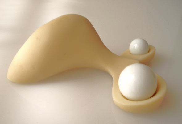 2個のトラックボールを組み込んだマウス。Y.Z移動に加え、2個のトラックボールで回転軸などの操作を補助。3Dモデルの制作や地図の操作などポインタ操作と分離できる。