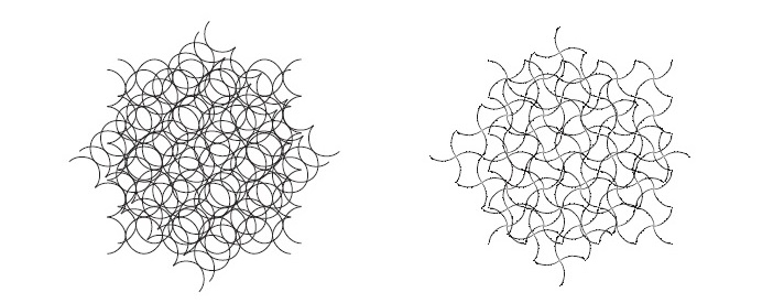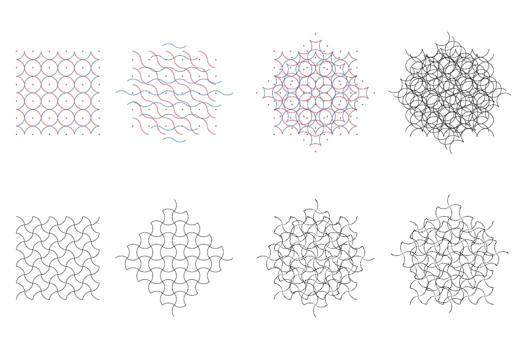 単純な線の構造が集合することで生まれる模様の実験。 test001 「曲面の直線」 test002 「平面の曲線」