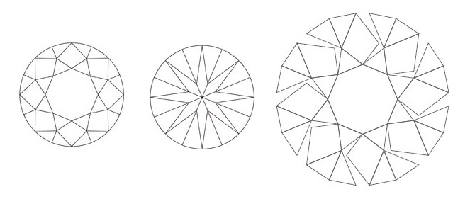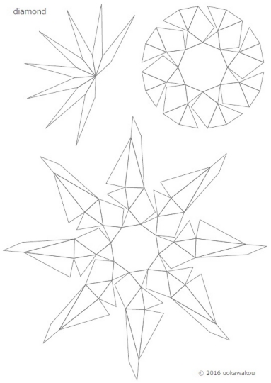 ダイヤモンドの展開図ブリリアントカット 57面体ペーパークラフト用(のりしろ無し)