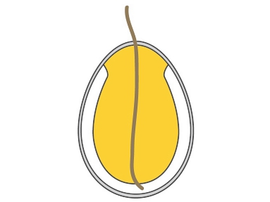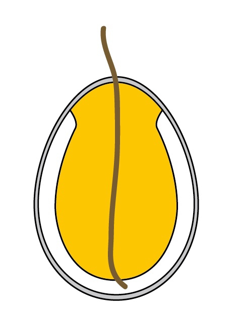 断面図。黄身の比率を高くし、前半部分を黄身のみにする事で黄身の垂れを表現可能。演出用キャンドルとして。