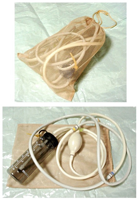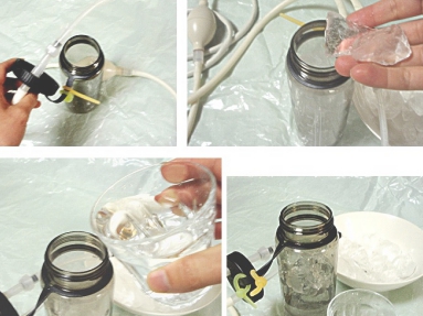 ボトル内に氷を入れ、水を適量注ぎます。 一度の握りで、150ml~200mlの水を流せます。 室温25℃の場合、チューブ外温度は、10~12℃。 逆流防止弁は2か所設置。クールスカーフと同じ要領で、首にチューブを巻きます。 ボトルをバックに収納して持ち運べます。 常にポンプを握る必要はなく、冷水が温まってきた時だけで十分な効果が得られます。