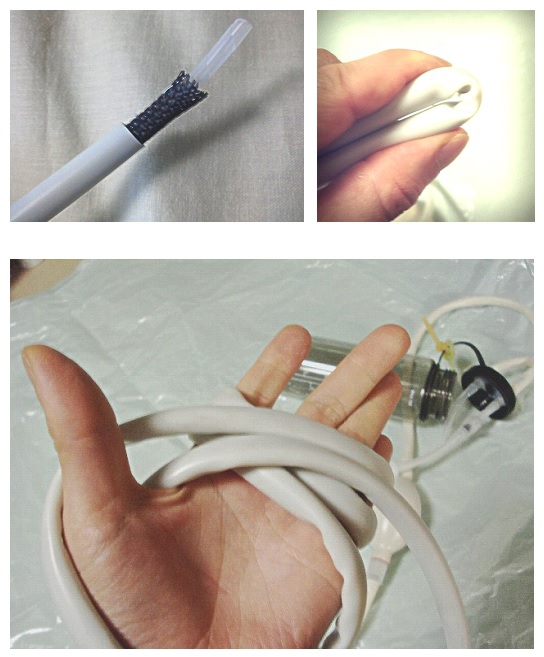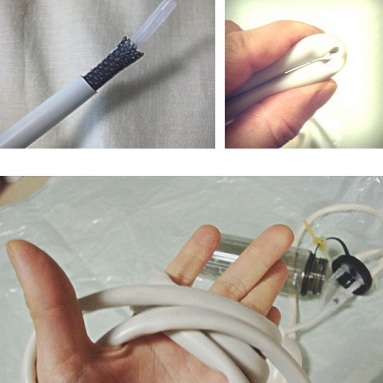 折れ、捩れ対応の為、内部にスパイラルチューブと補強用メッシュ材の3層構造。 金属部品、接着剤は未使用。 チューブが裂けた場合、チューブのみ交換可能。
