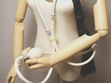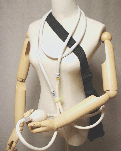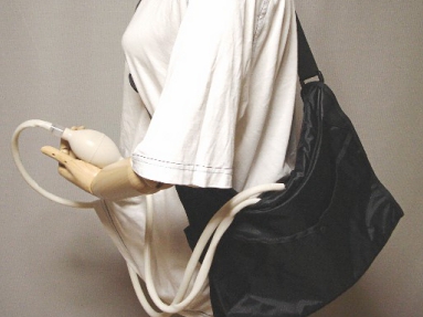 チューブ内に冷水を流すことで体温を下げる循環式手動ポンプ。宇宙服やレーサーが車内使用するクールスーツと同じ水冷方式。特筆すべき点は、$15で販売可能な最もシンプルな形であること。