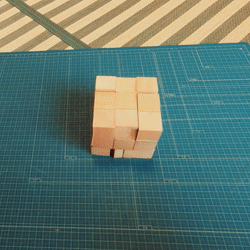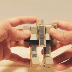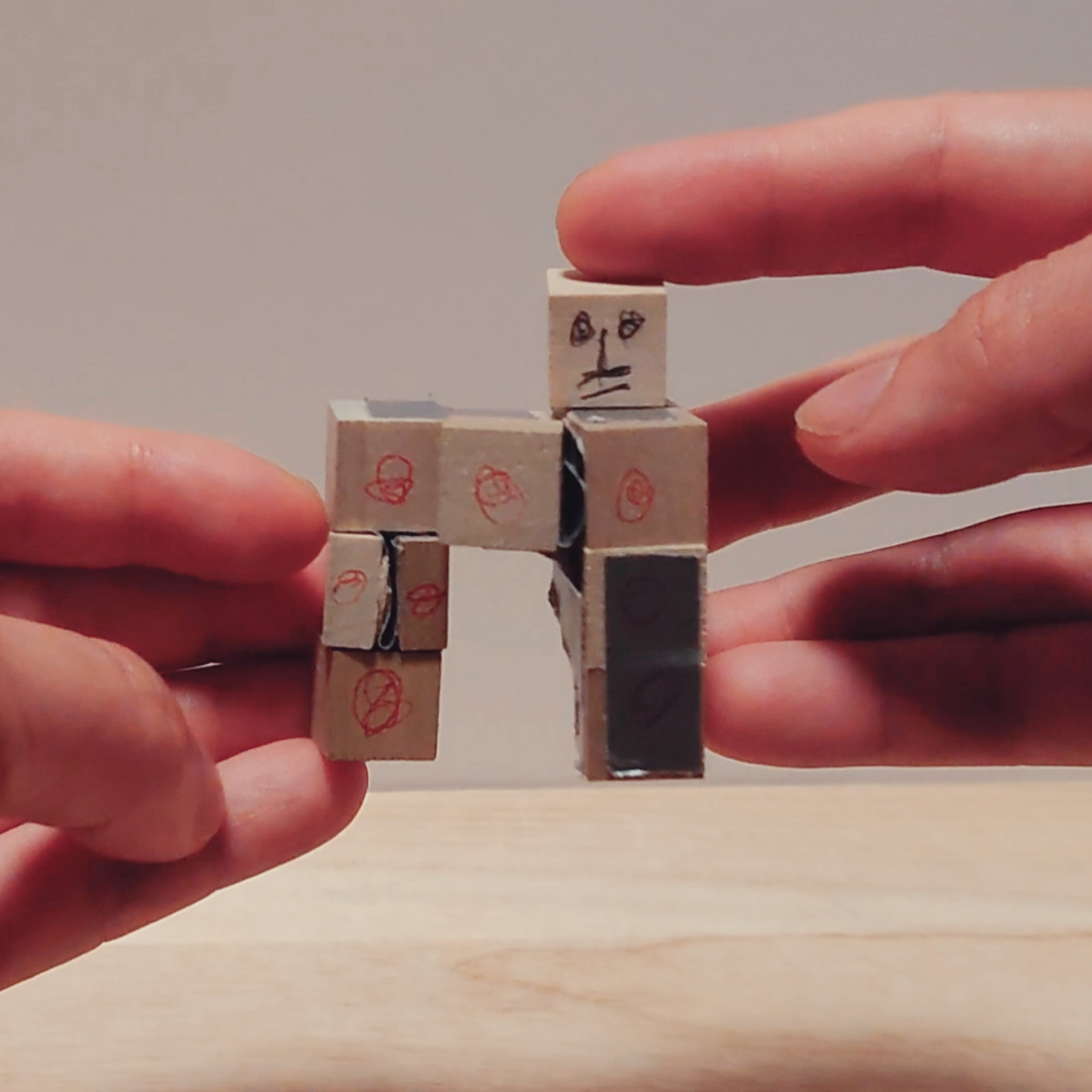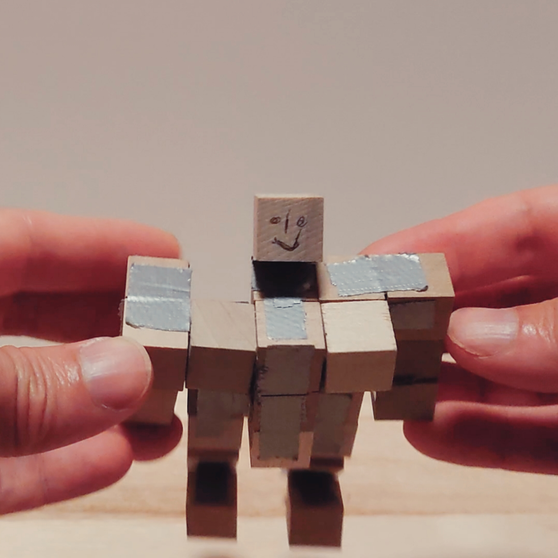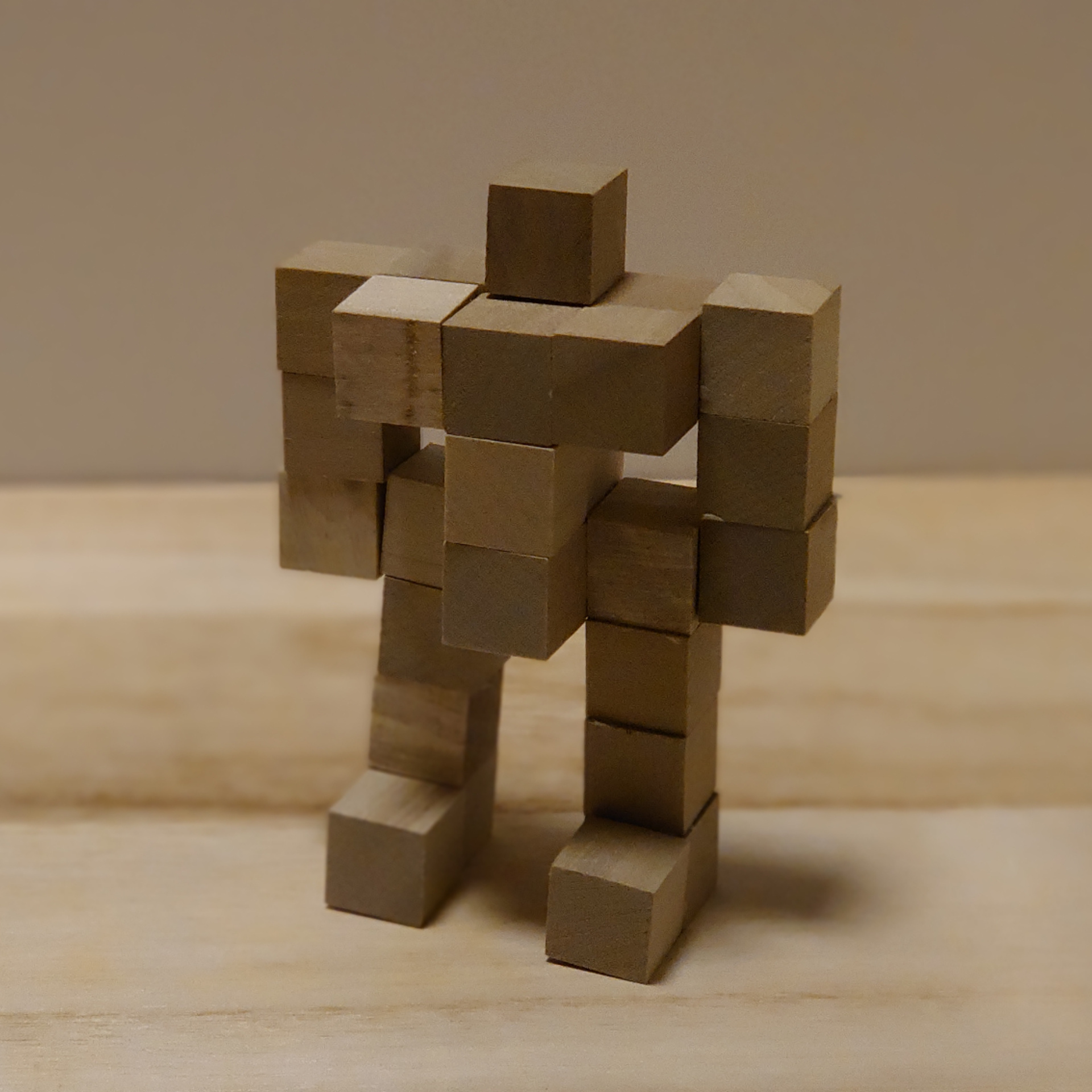 ルービックキューブからの変身ロボットの玩具。連結部分は粘着テープと磁石を利用しています。ポーズが固定なので遊べないのが欠点。