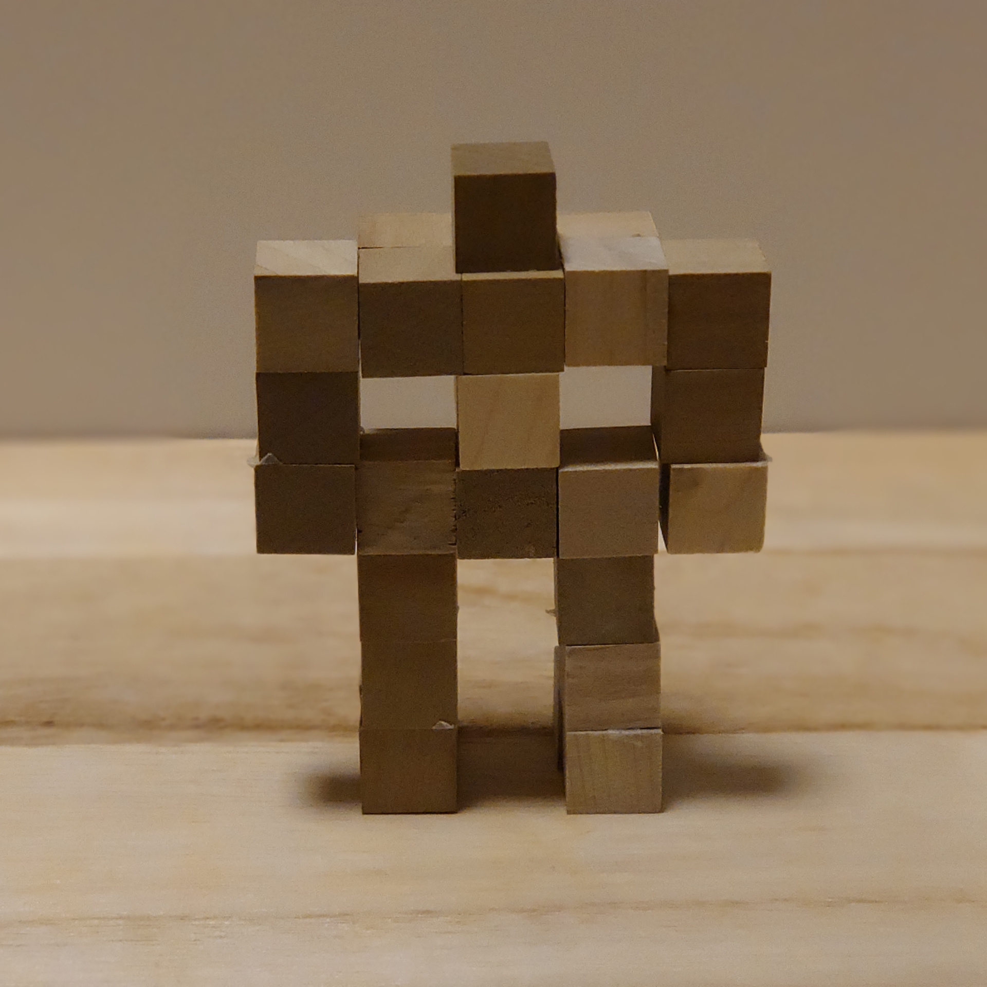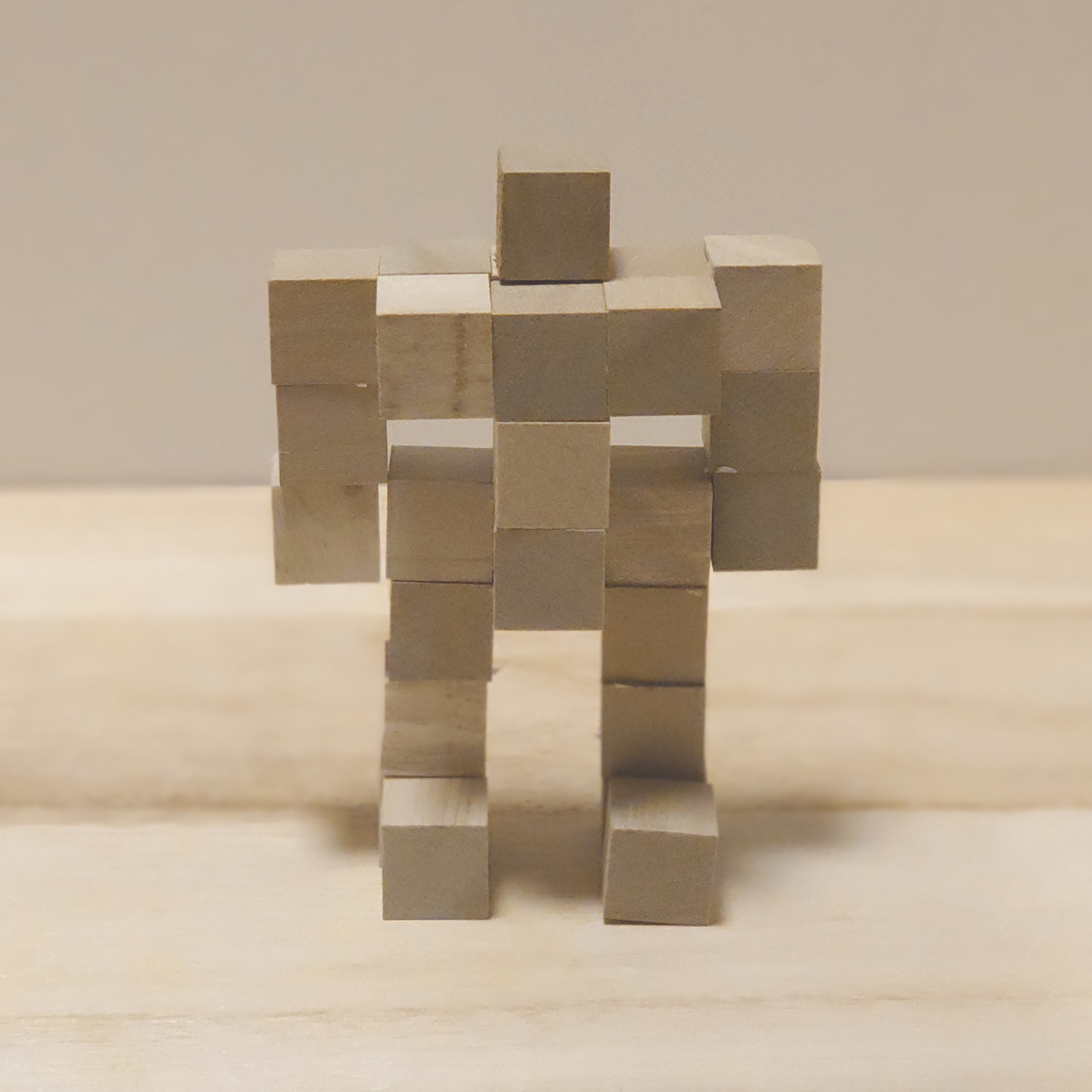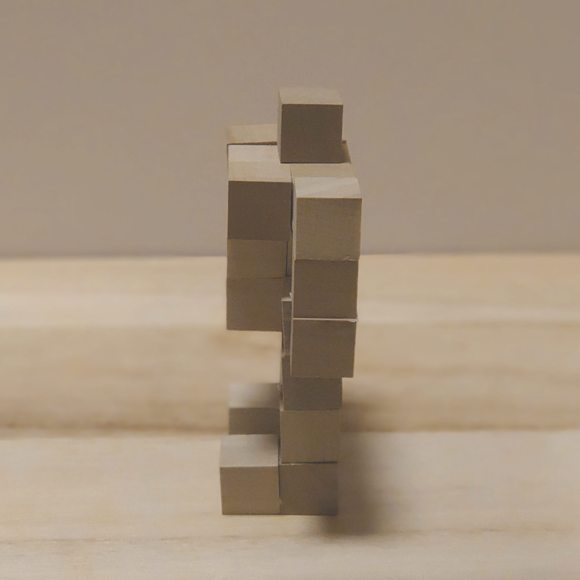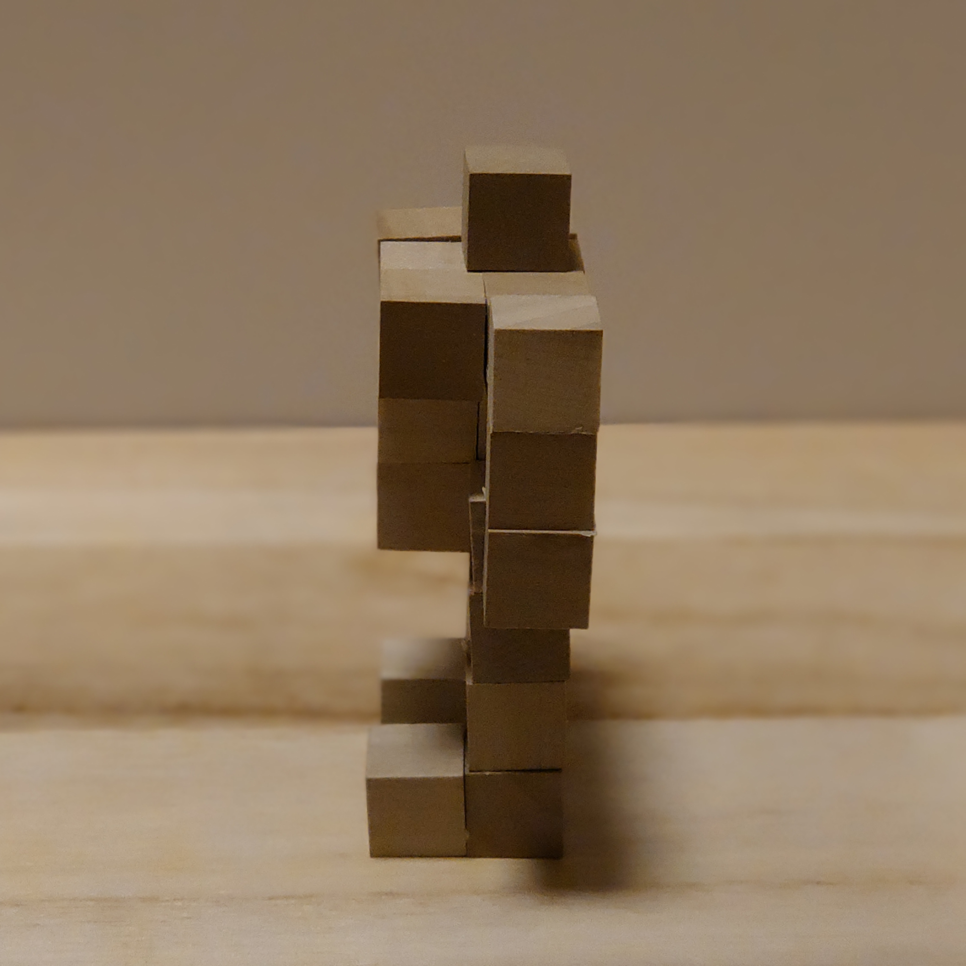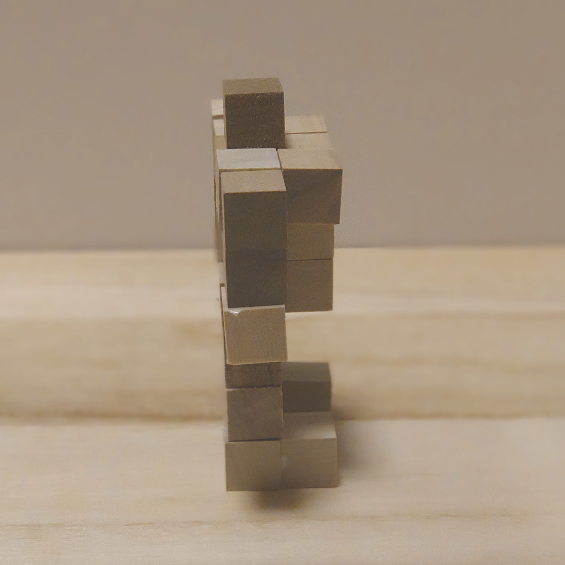 27個の立方体だと、肩の部分が左右非対称になってしまいます。 ↓ 2個の立方体を分割することで解決しました。