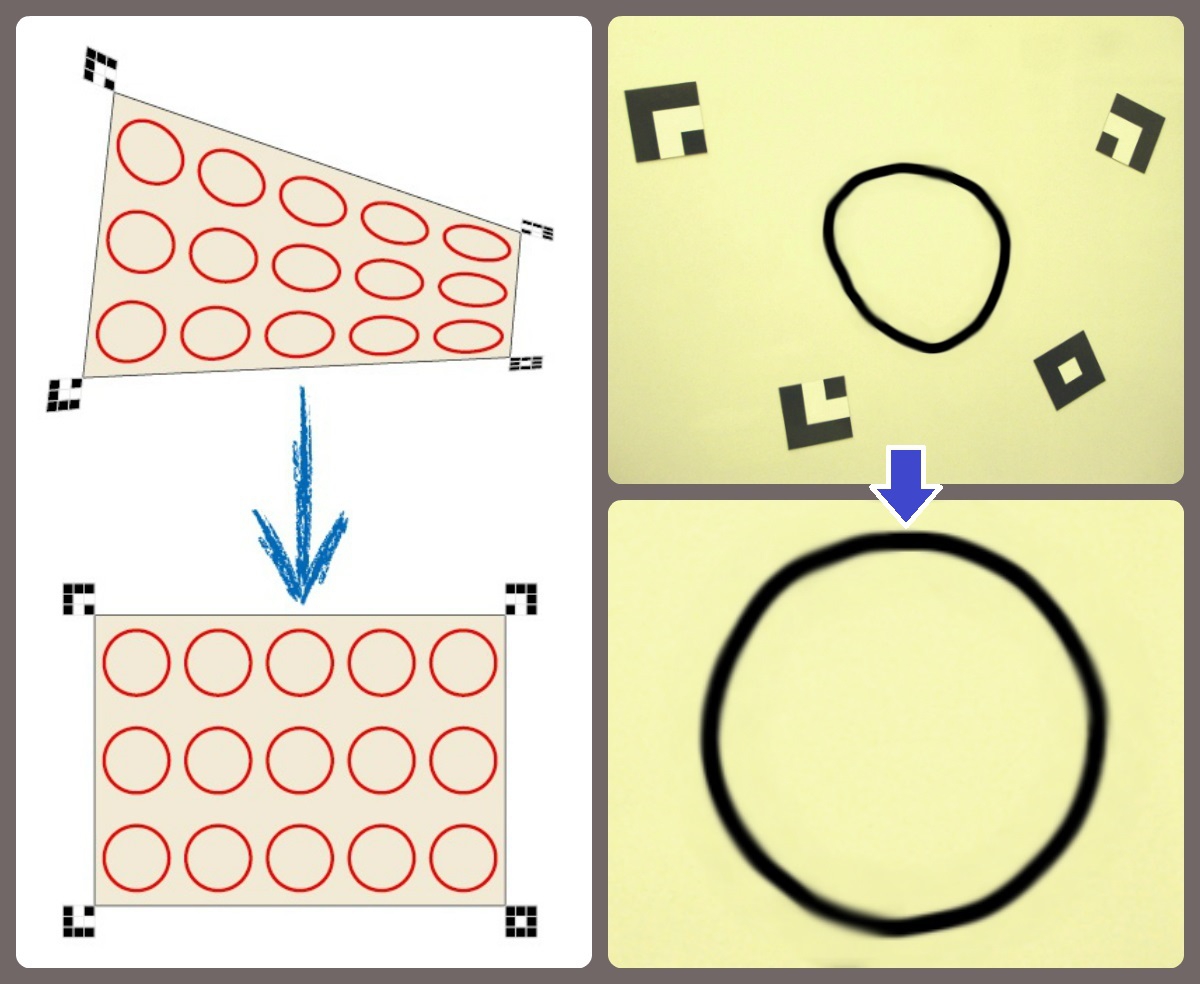 縦横の比率を入力するので、黒板の形状は問わない。左図:加工例。右図:マーカーの張り方次第で、円形に加工できる。