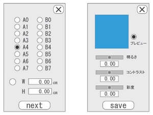 一般的なノートの縦横比は、1:√2 なので、目的の画像に合ったサイズにチェックを付ける事でデータ化は可能。縦横の数値入力も可能なので、板書の撮影にも対応。 画像のコントラスト調整にも対応。
