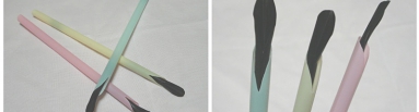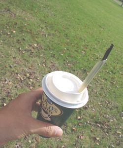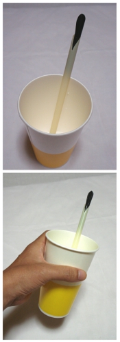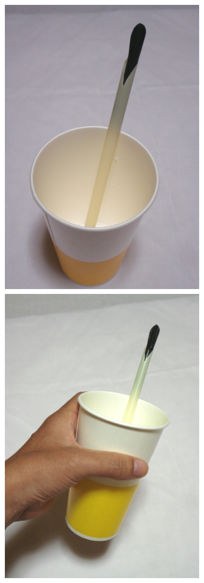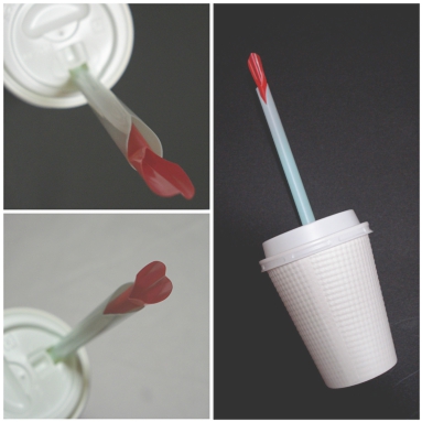 内側のストローを銜えると、液体の湯気を外側のストローから
