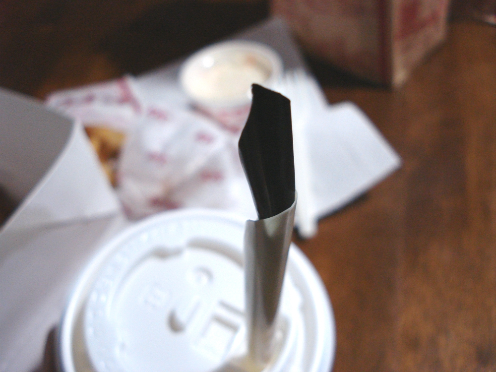 切り込み部分を使ってすすらなくても、内側、外側のストローを深く銜えると通常のストローの様に使えます。
