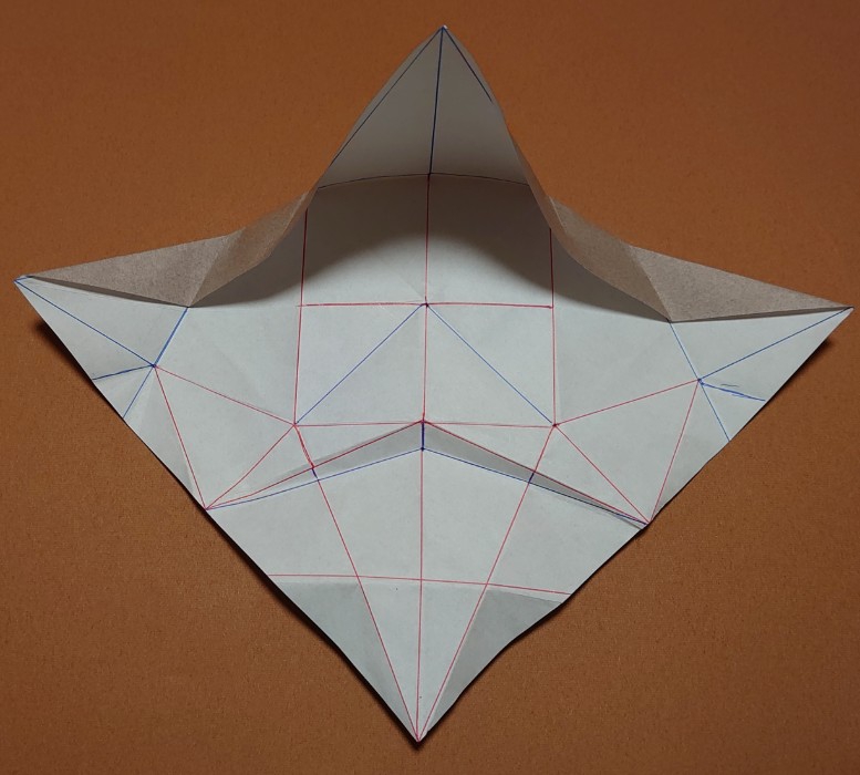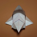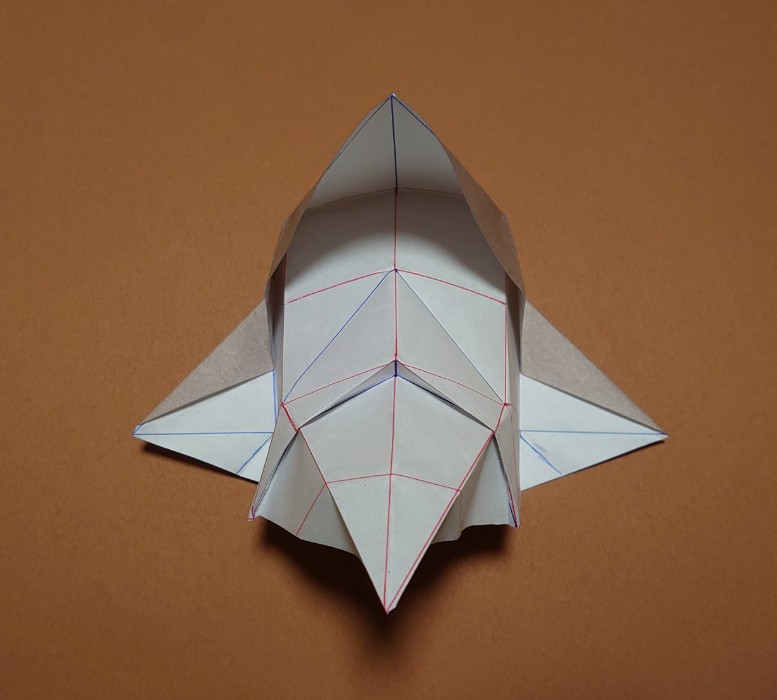 折り紙ペンギンの横姿が、ポンパドールの髪型の顔に見えたので、作ってみた。顎が気になるなら折り畳めば解決ですが、カッコ良くない。兎に角、尖った顎がいい。新幹線の先頭車両はこれでいいとおもう。