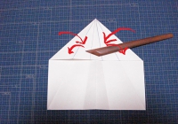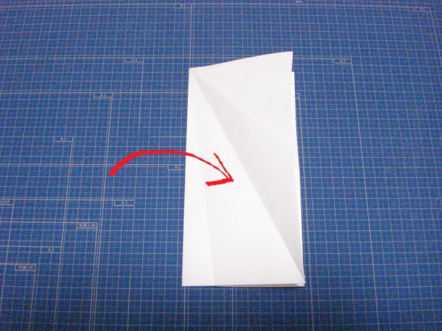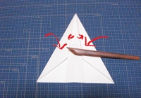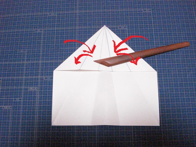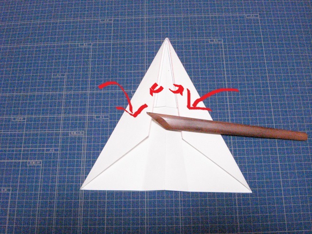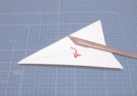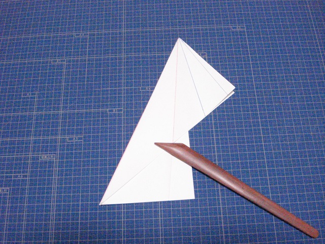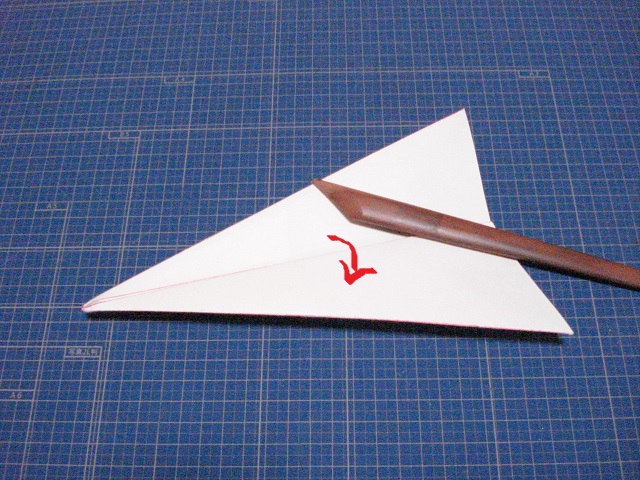 機首側を三角形に折り、直進性を重視しつつ重心は中央に置くことで、