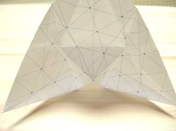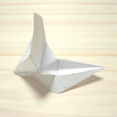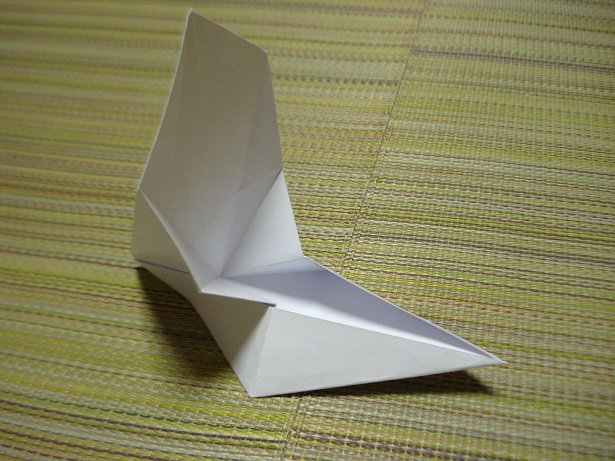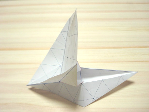 帆部分の折り目付けは終わりです。戻して船体を広げます。