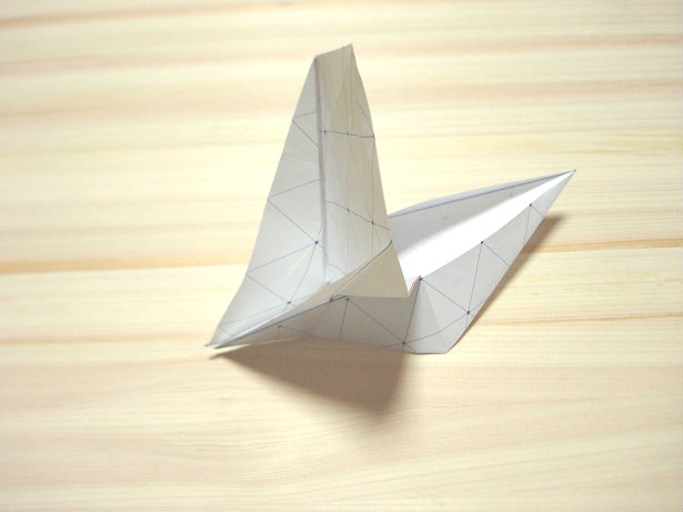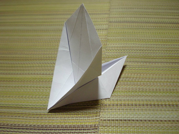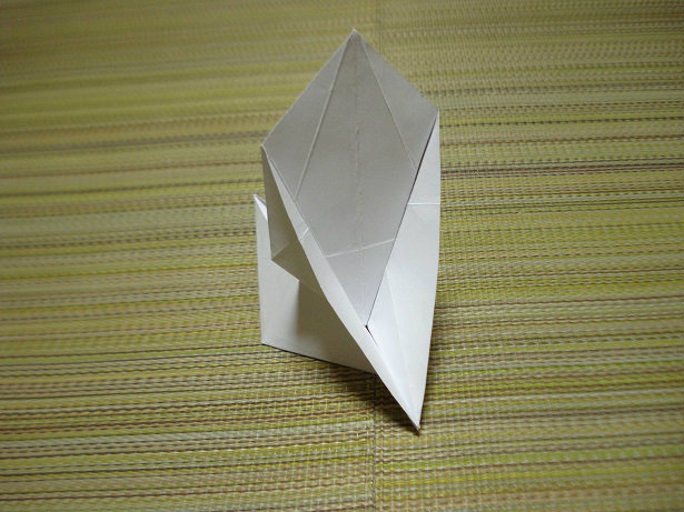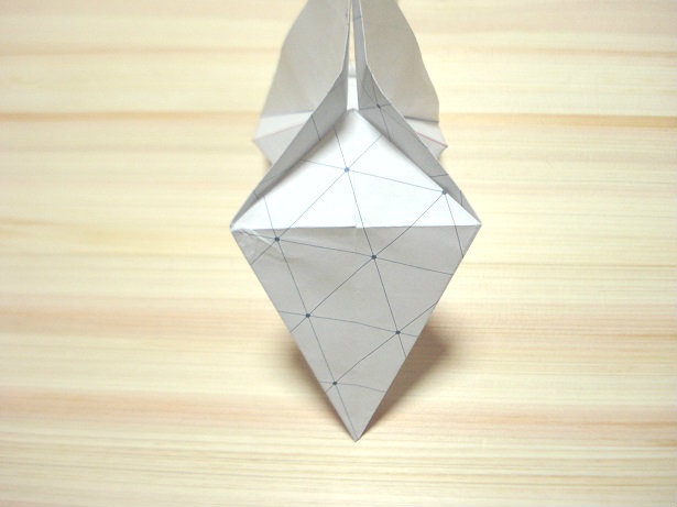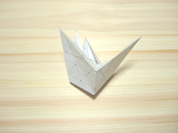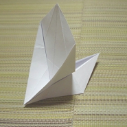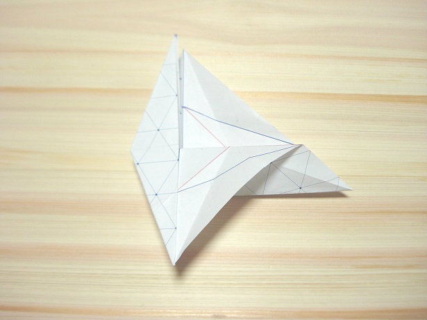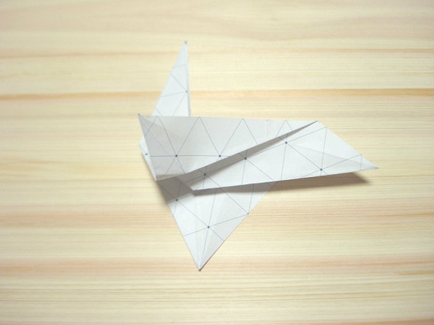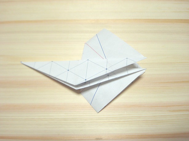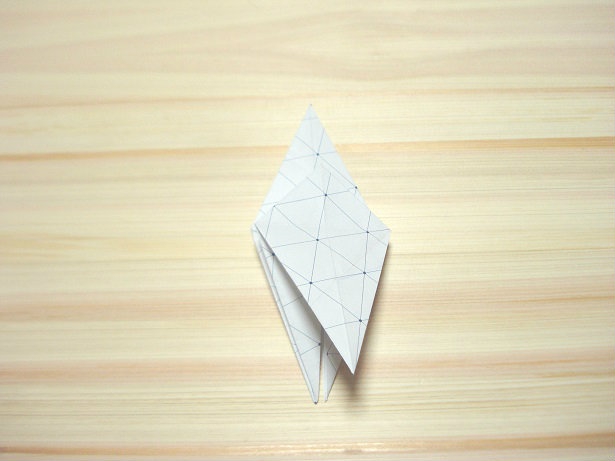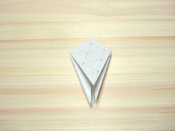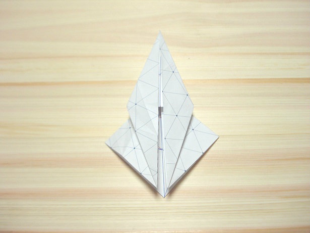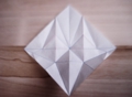 前半は鶴の折り方と同じです。後半は"開く"工程。