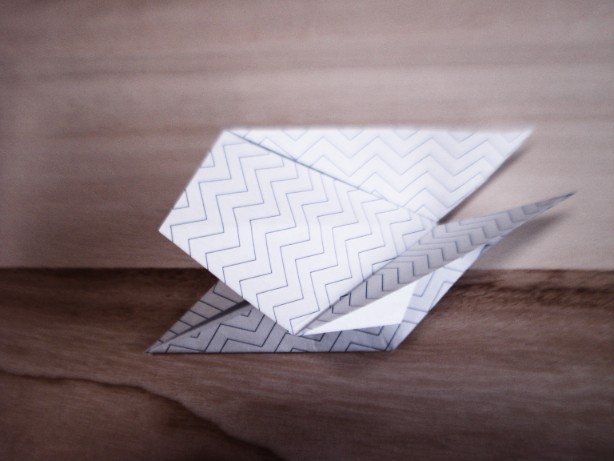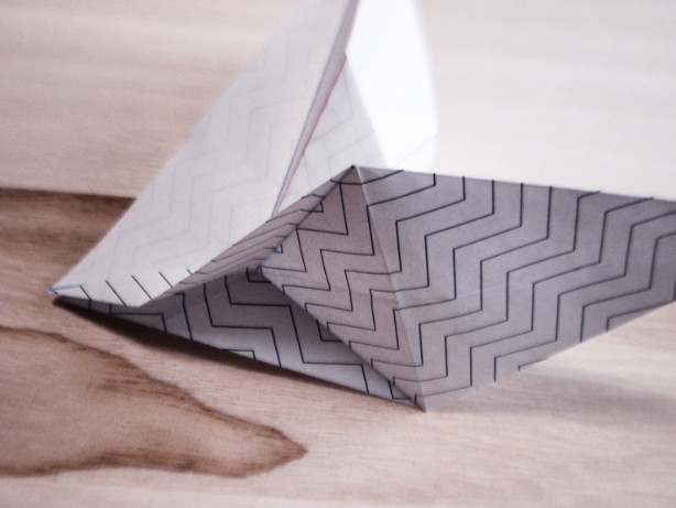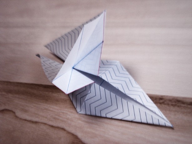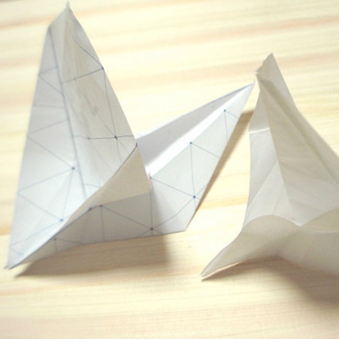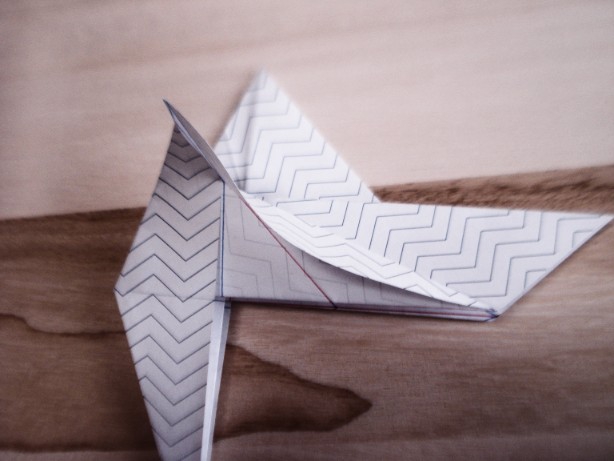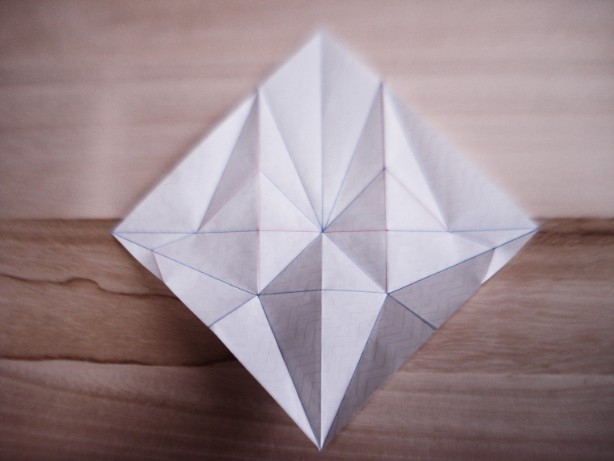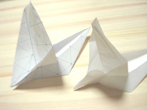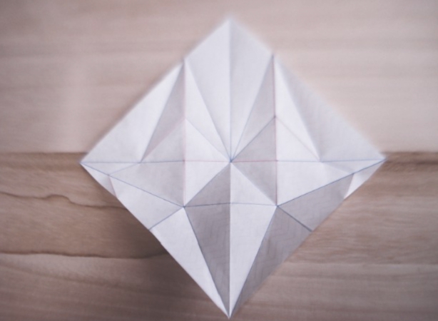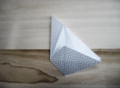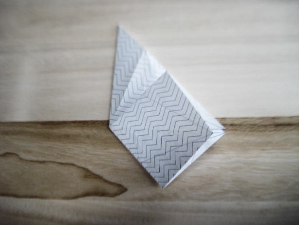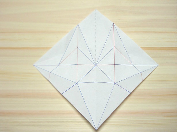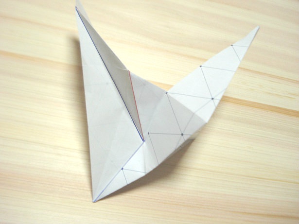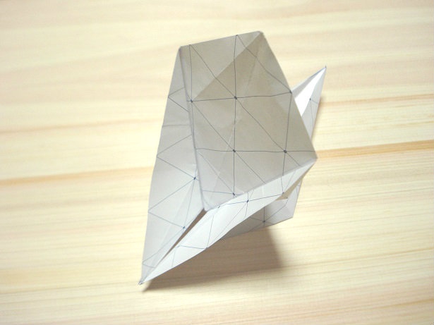 前半は鶴の折り方と同じです。後半は"開く"工程。