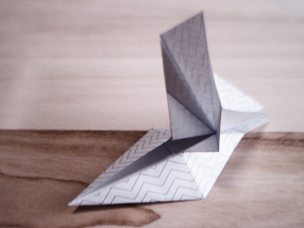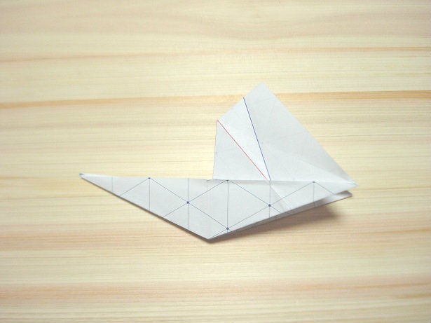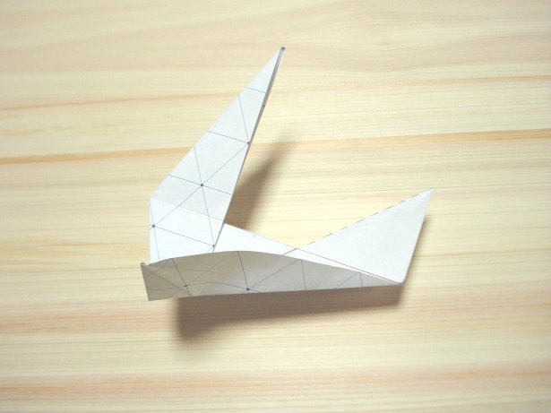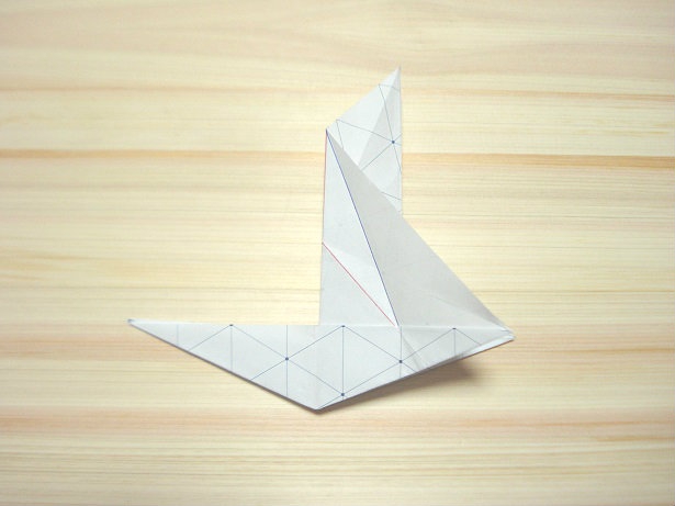 帆部分を折ります。注意点は、船尾の所は折り目を付けない事。