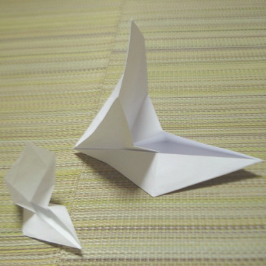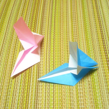 最初は"鶴"と同じです。 折数が少ない分、丁寧に。