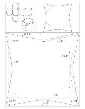 四角形の角四点が、67.5°と90°の比較。用途:弁当箱包み、箸包み、など。