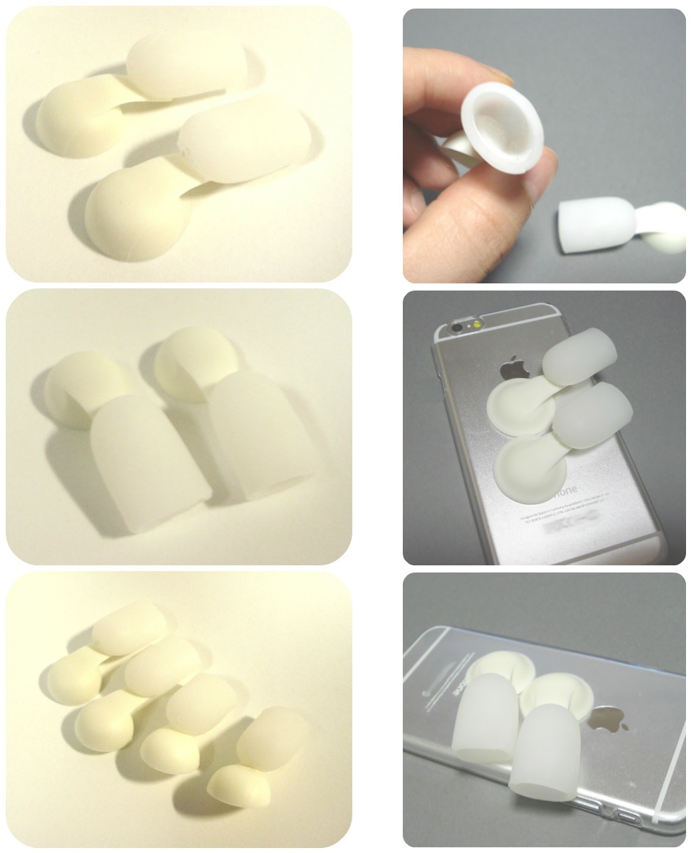 キャップと吸盤の間隔が、長い物と短い物を用意。 長い物は、安定性は欠けるが柔軟性が有り、端末を動かし易い。キャップと吸盤の間隔が、長い物と短い物を用意。 端末が重く感じる場合は、柔軟性は欠けるが安定する短い物が最適。