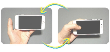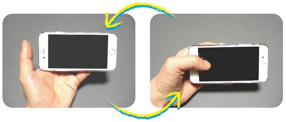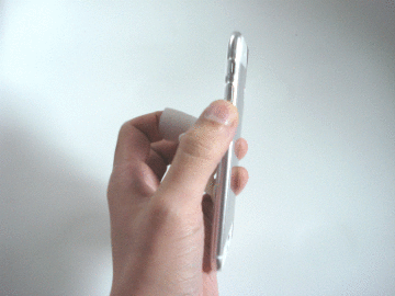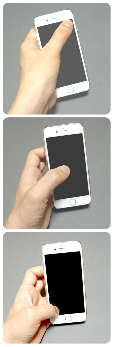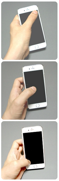 親指で、画面の右端から左下を容易に操作できる。端末を支える指を動かす事で、親指の負担を軽減。
