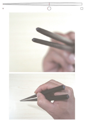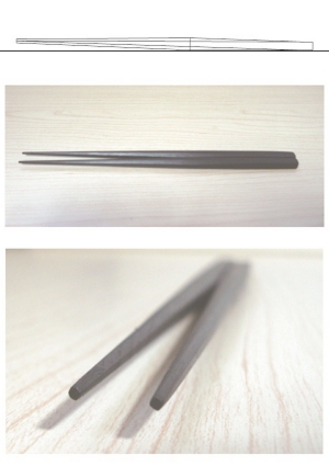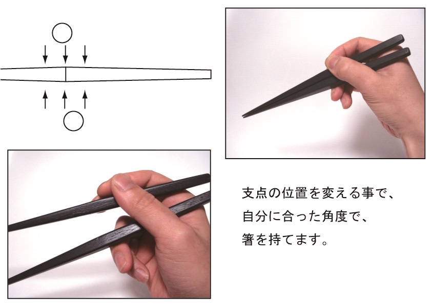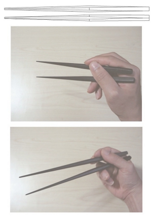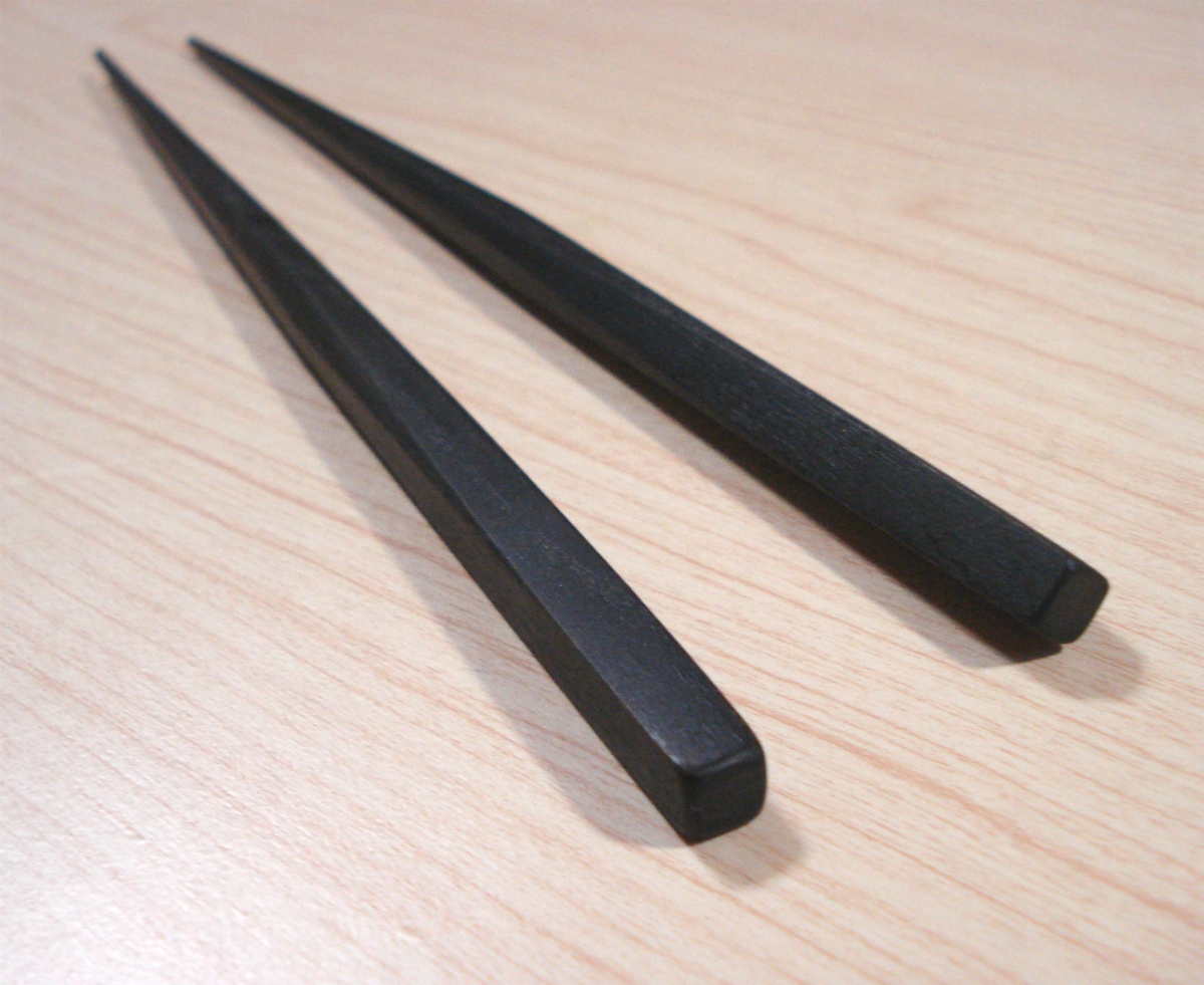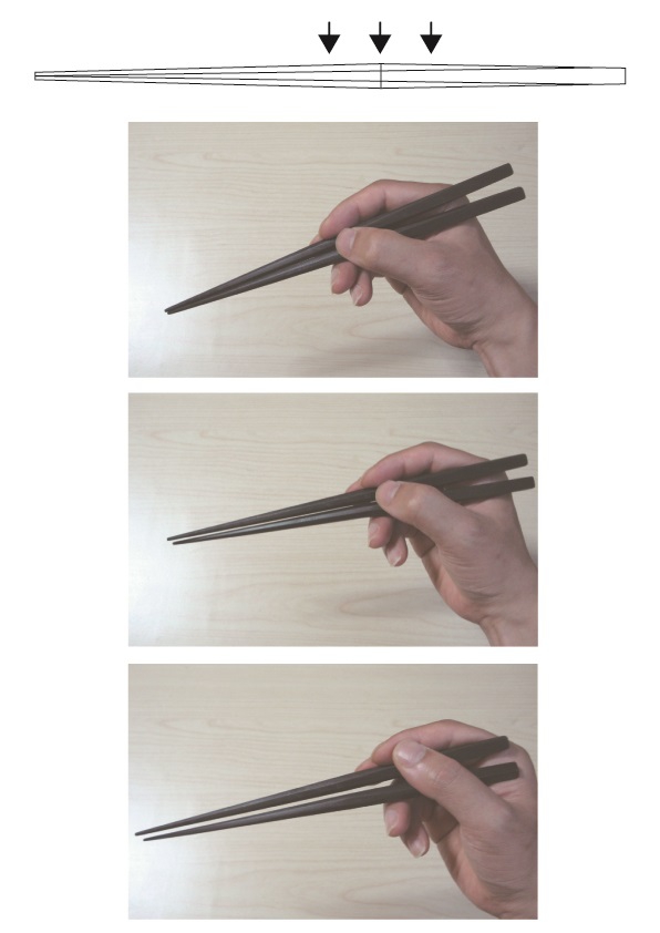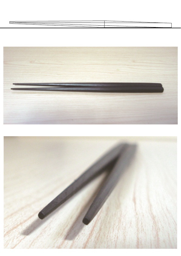 箸の頭部分が細くなる様に傾斜がかかっている為、