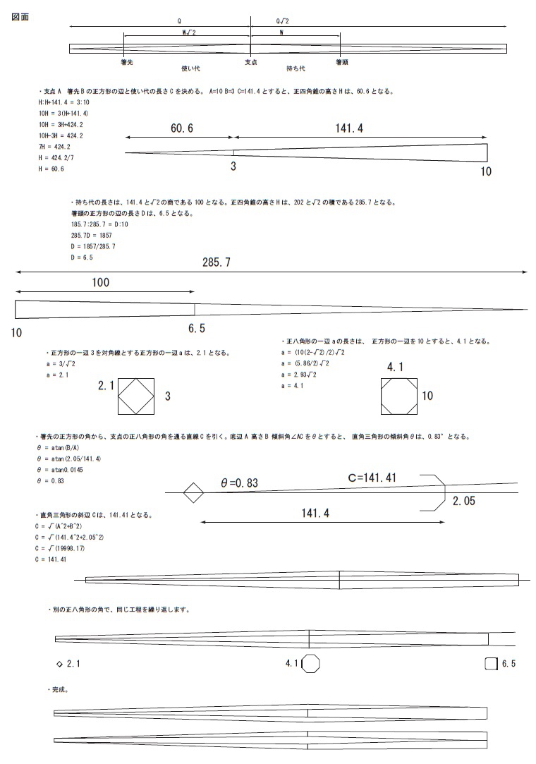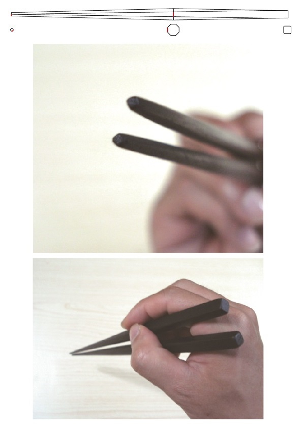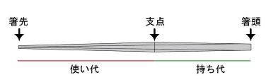 ・支点と箸先の直径、持ち代の長さの3点を決めると全体の設計が出来ます。
