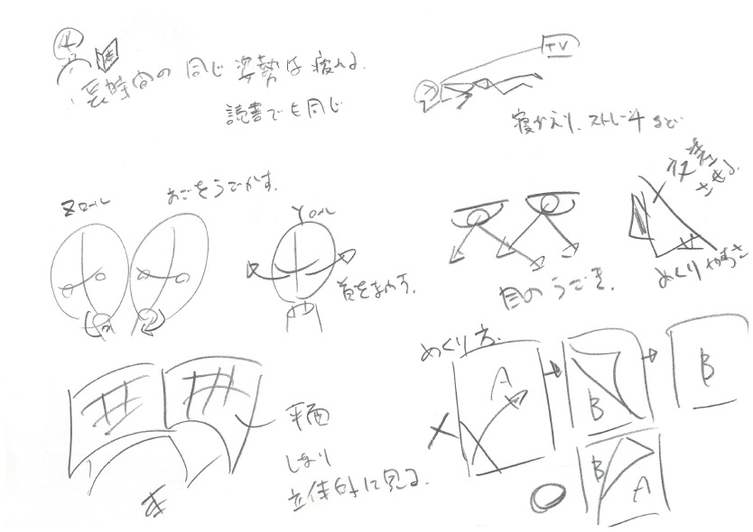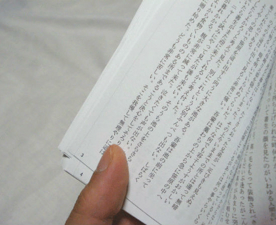 ページの傾き、しなりを利用し視線を最小の動きにすることで、