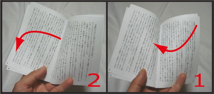 ページをめくりながら次(裏)のページを読む。