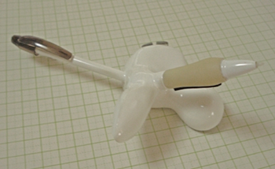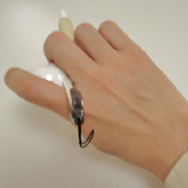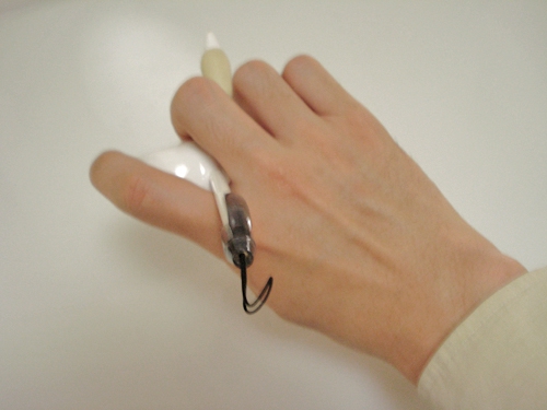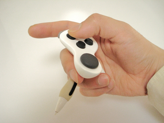 一般的なペンの握り方も自然に。グリップを握る事でボタン操作が安定します。
