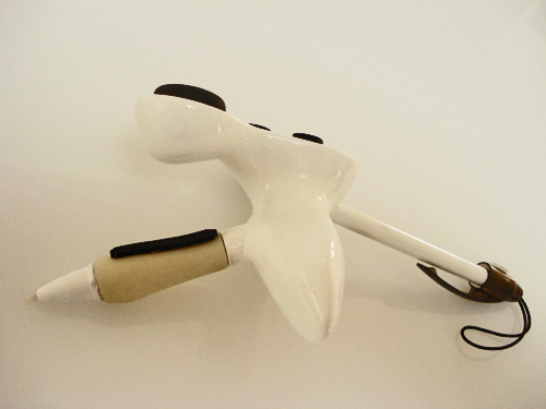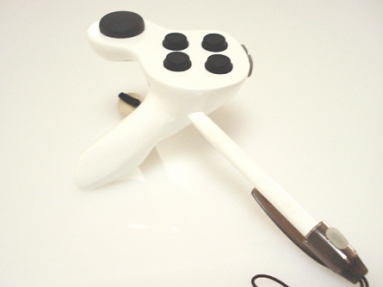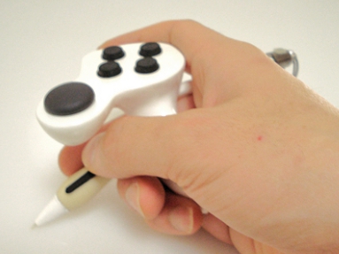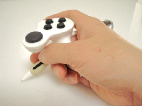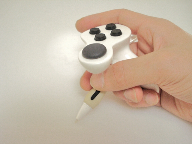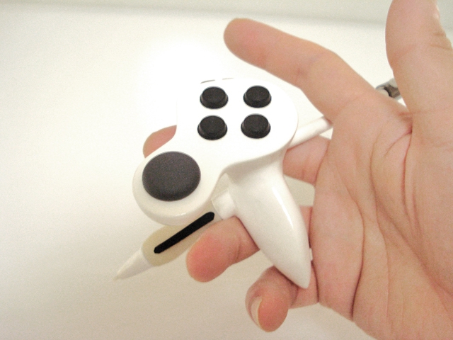 ゲームコントローラーの様なタブレット用ペン。メニュー選択やボタン操作などマウスと持ち替える事無く、操作できます。片手でも安定しており、ゲーム用にも使える。