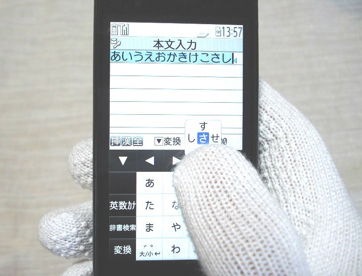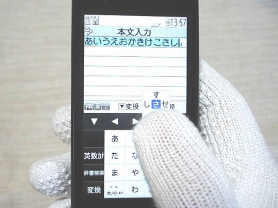 スナップボタン式の場合、画面の接地面が狭く、接触の感覚が指先に伝わるので、フリック入力も容易です。