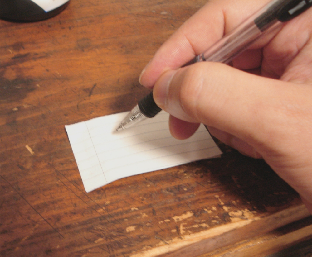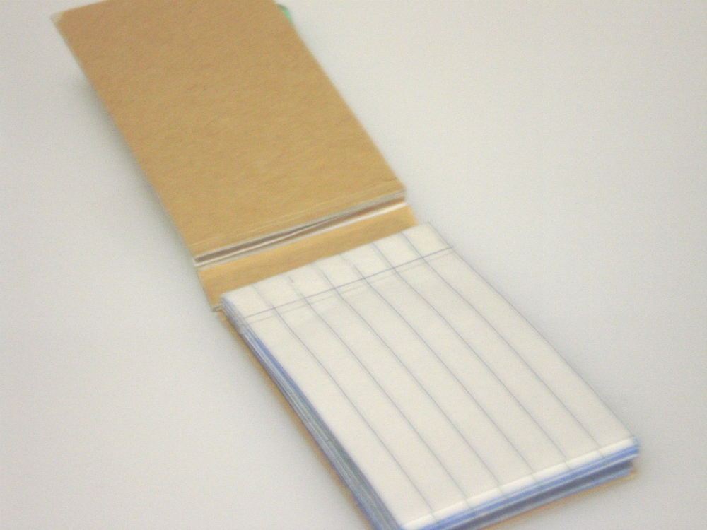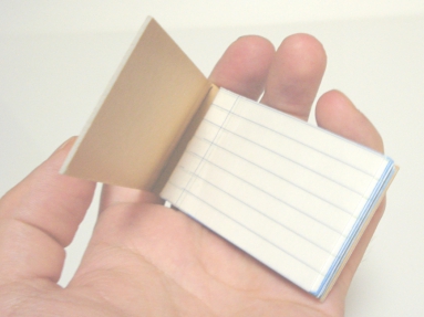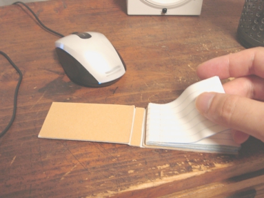 手のひらサイズで持ち運びも容易。自分用メモなど、使い方は自由。上用紙と下用紙の横幅を変えることで、2枚一組で剥がし易く加工。
