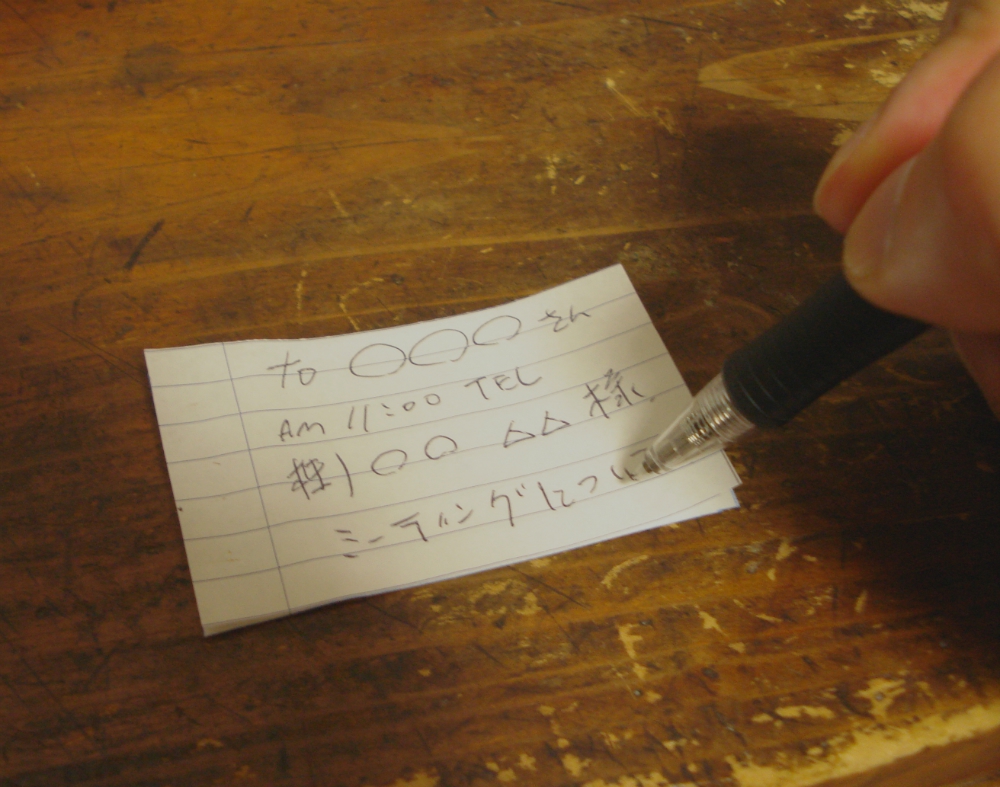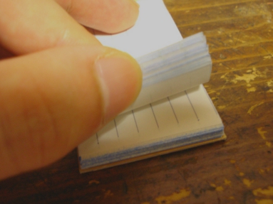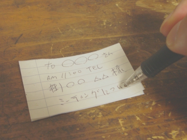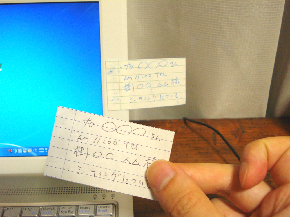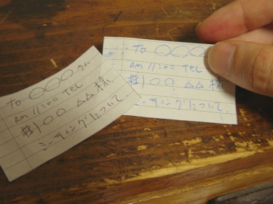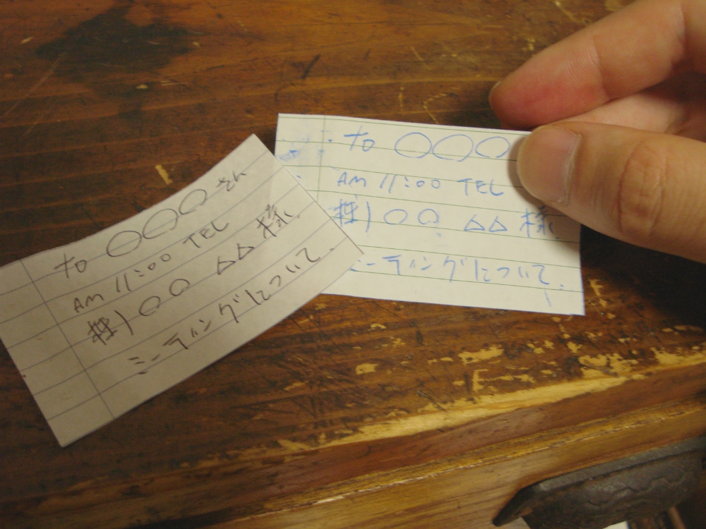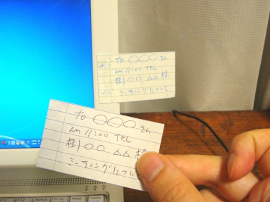 ノーカーボン複写紙を利用した、2枚一組で使用する付箋紙。電話の取次ぎなどの業務で、相手に渡すメモとは別に自分用の控えが有れば相手へのフォローが容易。